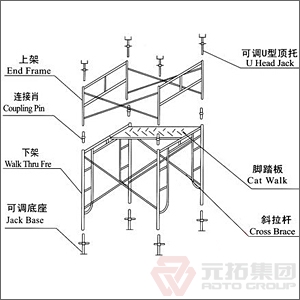 1、 腳手架部件名稱不一致 。目前,國內各廠對門式腳手架主要部件的稱呼不一致。各有一套名稱,給腳手架的推廣應用帶來很大不便。