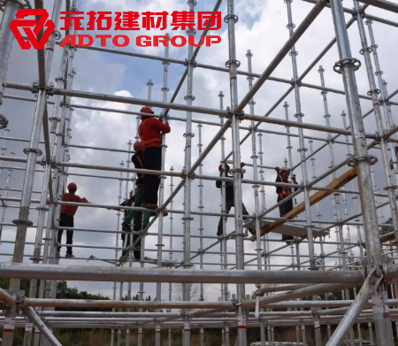 盤扣腳手架做到拆裝極簡(jiǎn)便,一個(gè)人只需要一把錘就能做到安裝和拆卸的全部過(guò)程。施工效率大大提升提高,兩個(gè)施工工人僅需1天便能完成350m3的施工現(xiàn)場(chǎng)。