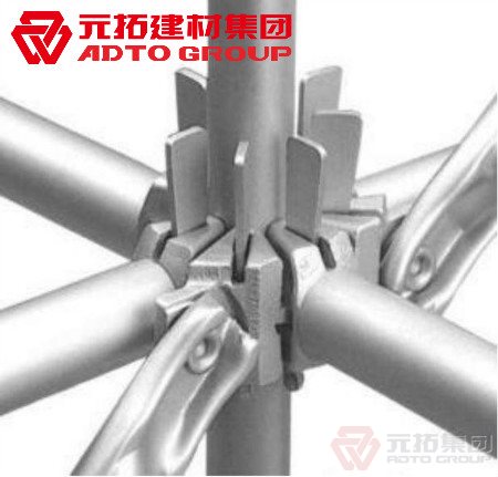 圓盤式腳手架技術(shù)起源于德國,為歐洲和美洲的主流產(chǎn)品,支撐架分為立桿及橫桿、斜桿,圓盤上有八個孔,四個小孔為橫桿專用;四個大孔為斜桿專用。