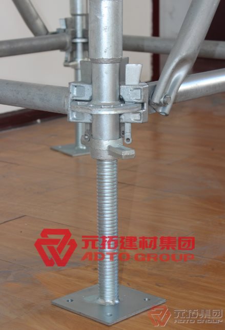 1、盤式腳手架搭設(shè)前,對基礎(chǔ)平面進(jìn)行檢查,采取拉線的方式進(jìn)行找平保證腳手架下托在同水平面之內(nèi),保證腳手架的受力均勻,施工中保證各個連接點的緊密安放,嚴(yán)禁虛接的情況出現(xiàn)。