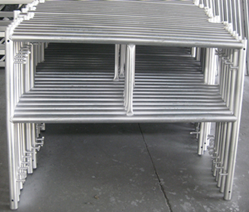門式腳手架的搭設(shè),應(yīng)先在端點底座上插入兩榀門架,并隨即裝上交叉桿固定,鎖好鎖片,然后搭設(shè)以后的門架,每搭一榀,隨即裝上交叉桿和鎖片。