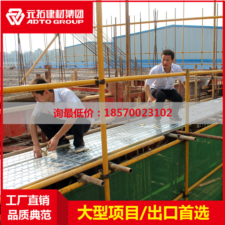 近幾年,鋼踏板市場非常好,很多的工程項目都換掉了以前的竹木跳板,鋼網(wǎng)跳板也不再受歡迎。市場需求導致國內(nèi)廠家遍地開花,小作坊居多,質(zhì)量不可靠。這里主要介紹一個腳手架鋼踏板第一制造商——元拓集團! 元拓鋼踏板產(chǎn)品詳細描述: 1.有沖孔的鋼跳板耐用,減重…